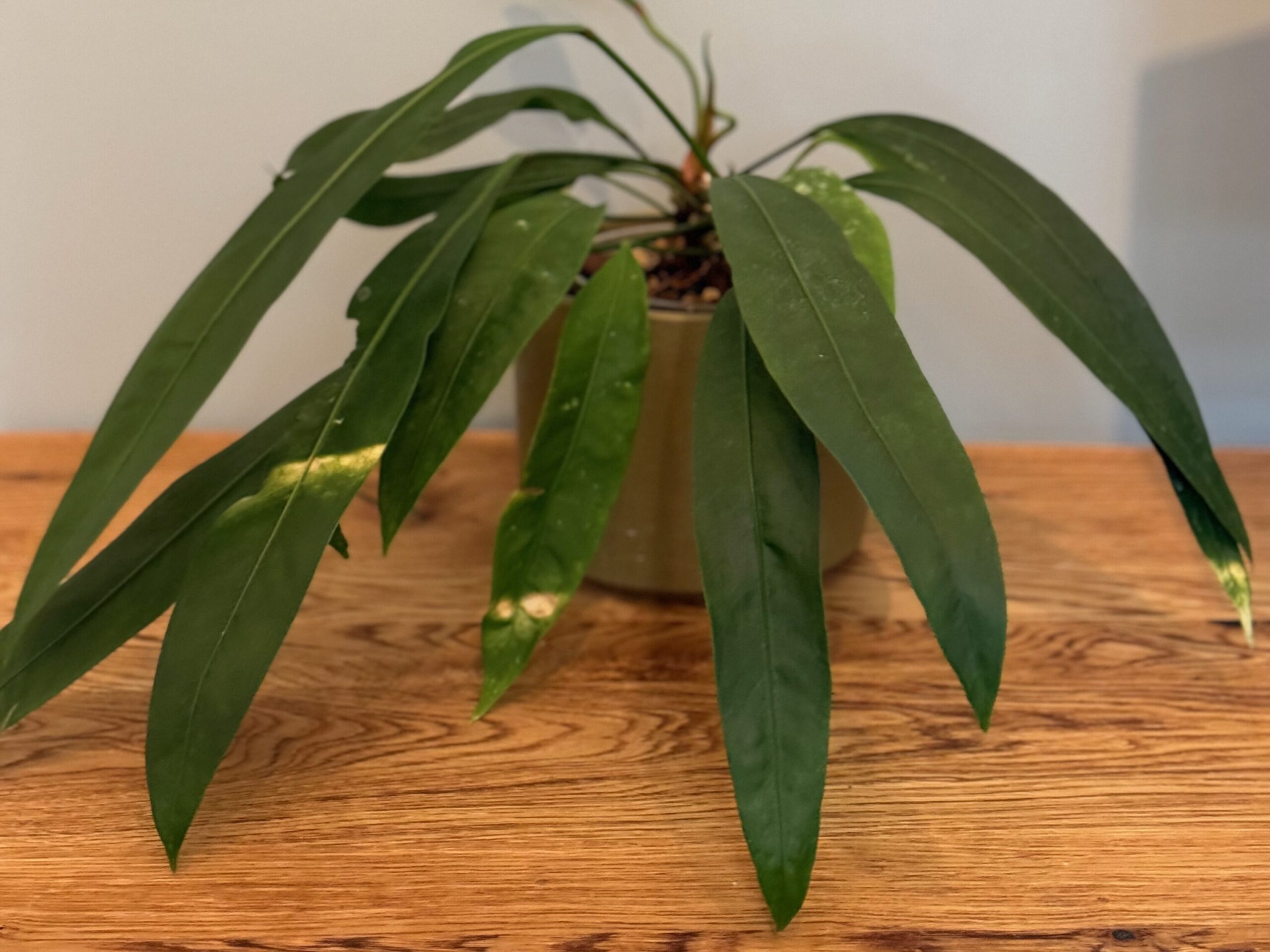 For example, an Anthurium gracile with burns on its leaves.