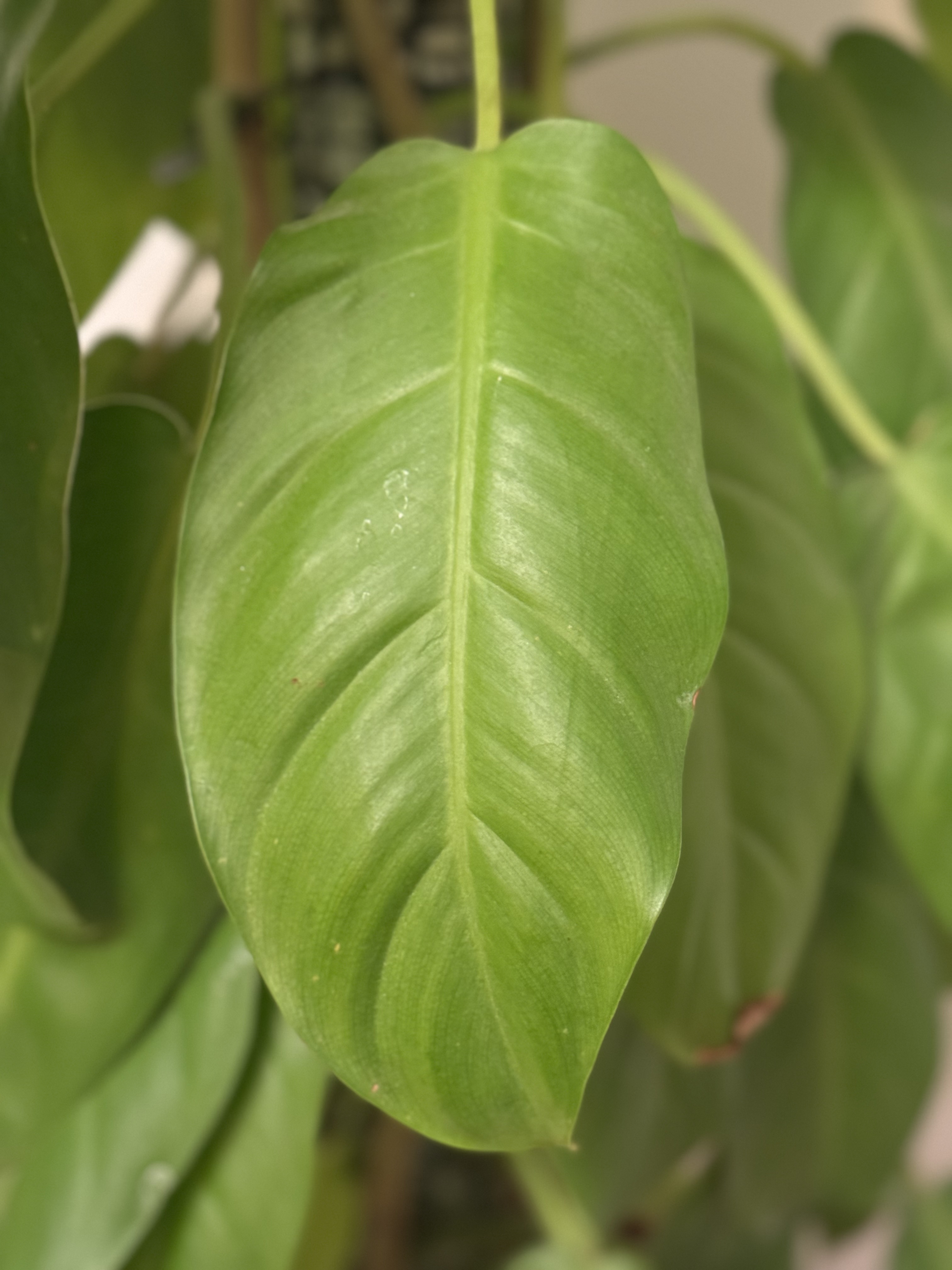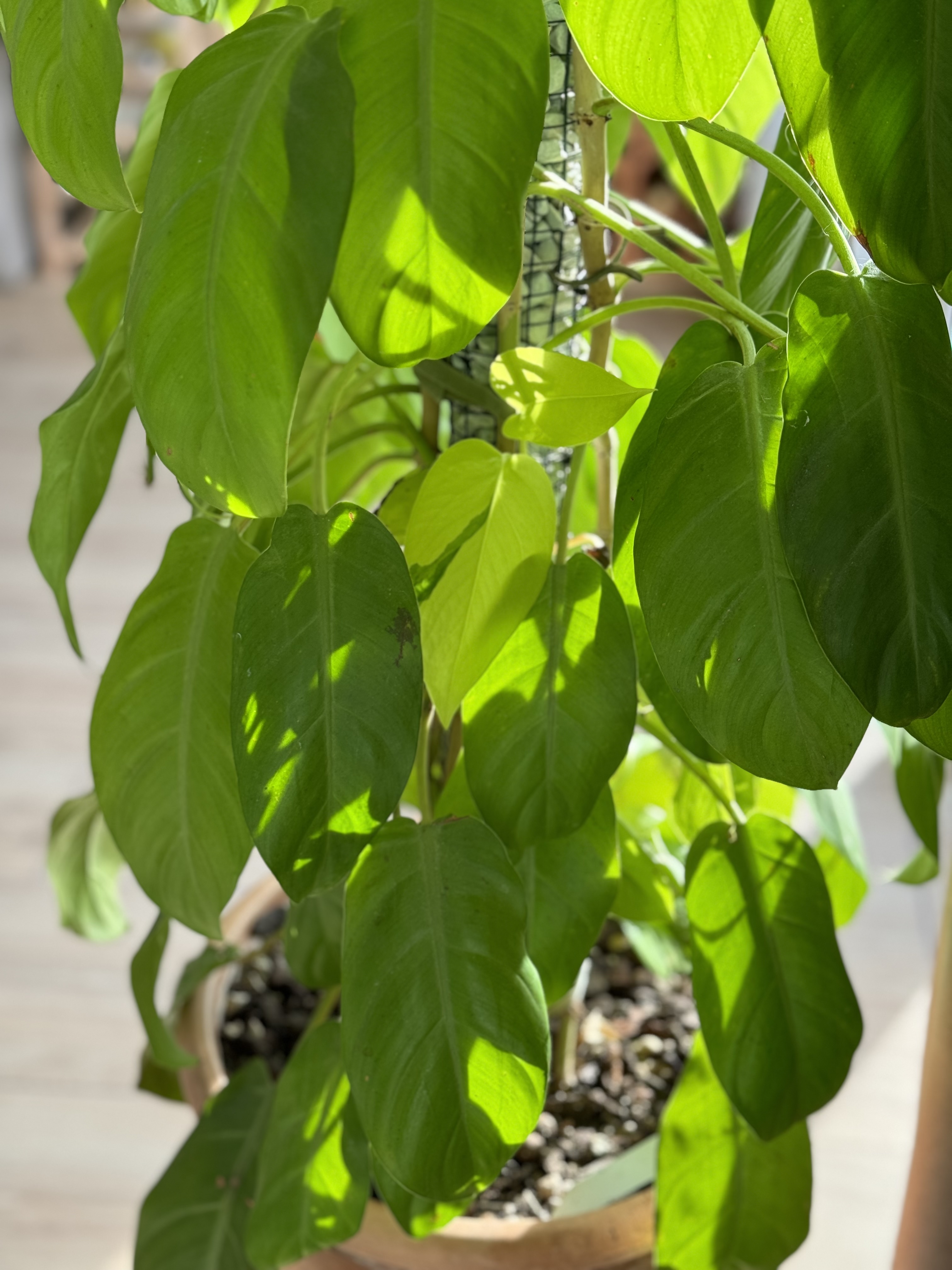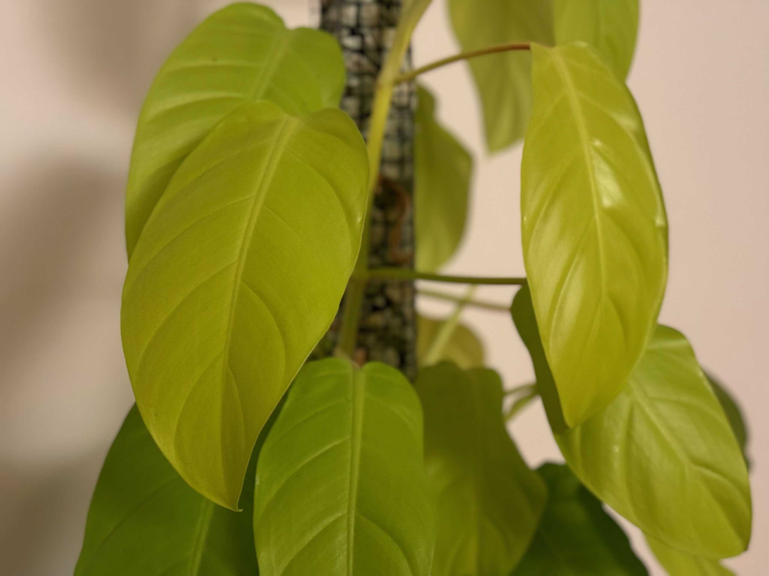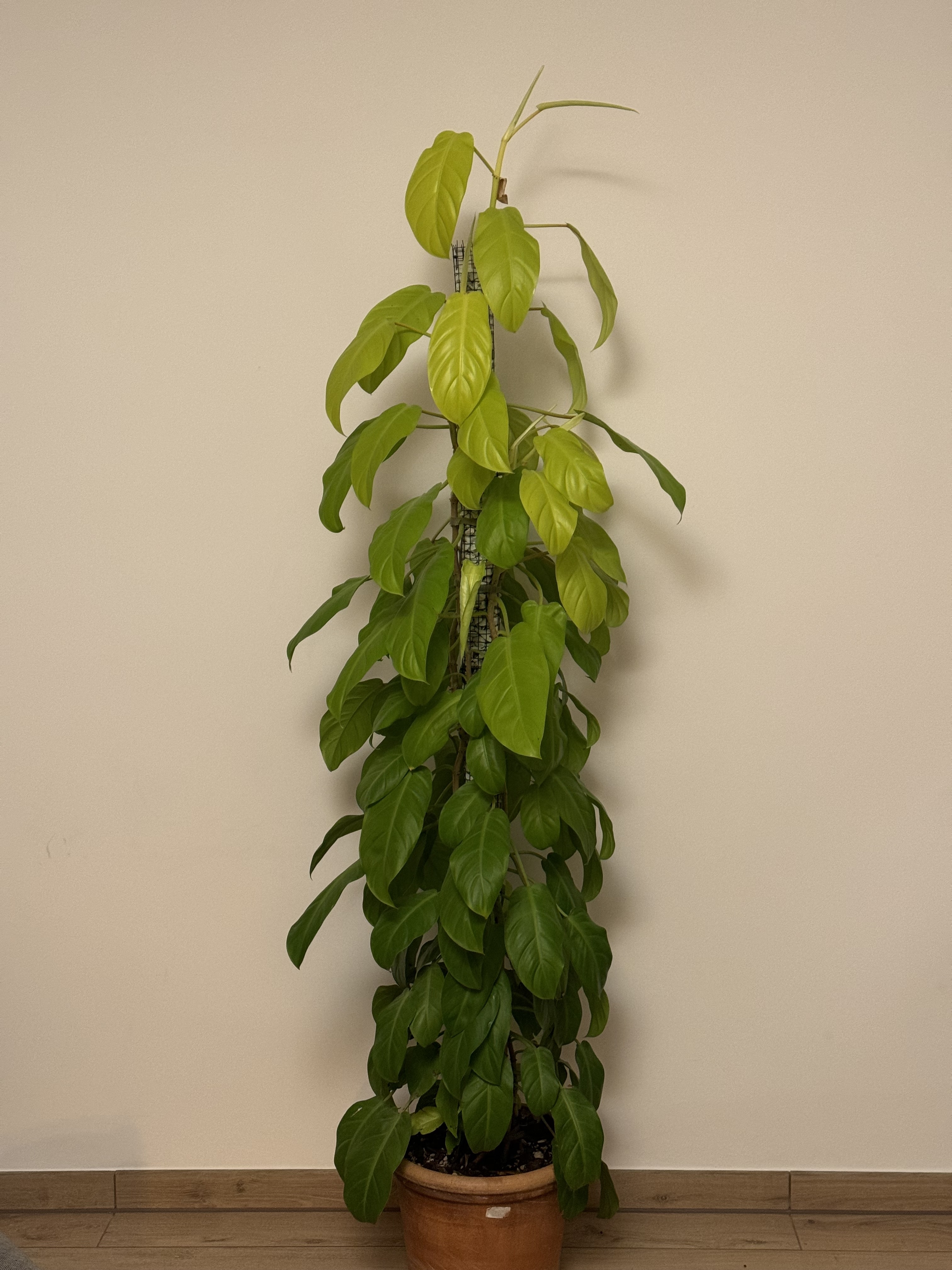 It simply wants to grow tall and fast, with an inherent upward trajectory. Although the stem is typically broader than that of a Melanochrysum, a support structure becomes necessary at a certain height. While it would likely accept a moss pole, it is not strictly necessary. Personal Experience