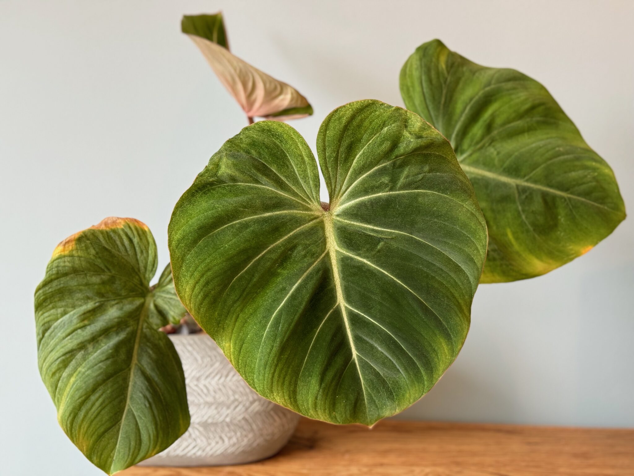 The Syngonium Wendlandii is truly something special. With its deep green, velvety leaves, a silver stripe in the middle, and a relatively compact size, it sets itself apart from its counterparts.